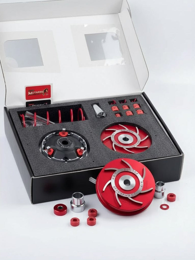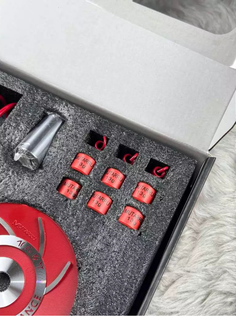 The MUTARRU Pulley Set is crafted with precision engineering to deliver smoother power transfer and enhanced engine efficiency. Built from durable, high-grade materials, it ensures reliable performance, improved acceleration, and long-lasting durability even under demanding riding conditions. Designed for both style and function, its refined red finish adds a premium, sporty touch to your motorcycle while maintaining optimal performance on every ride.